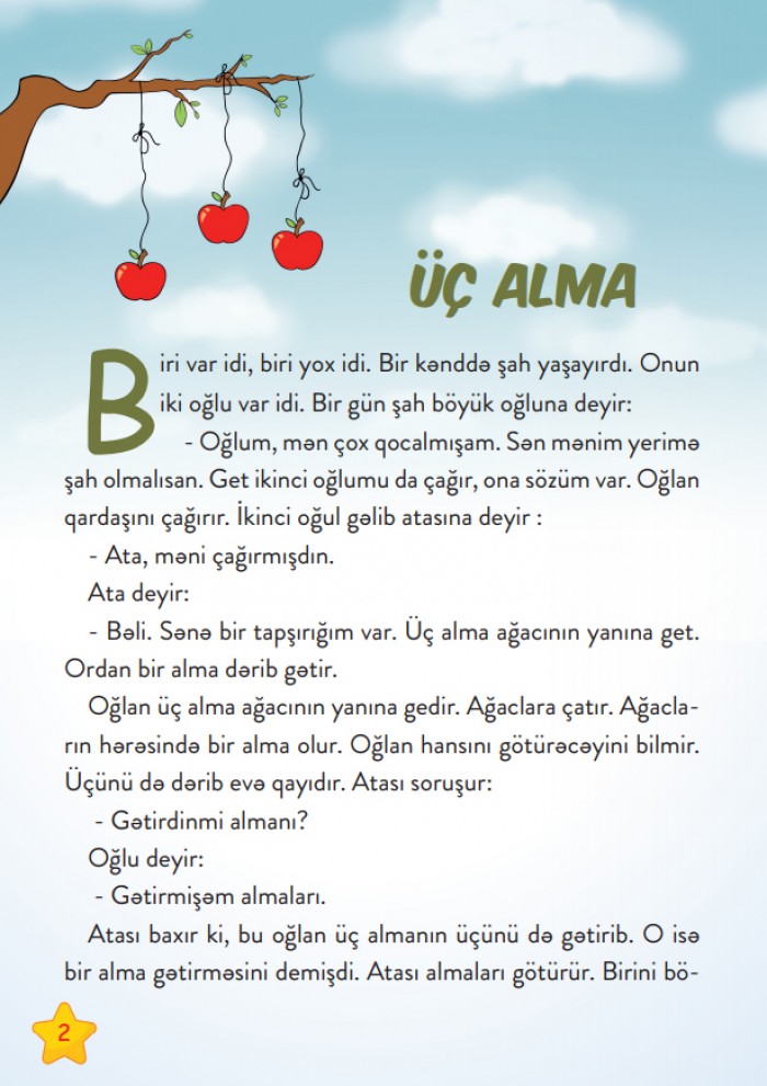Tarix :   08 İyul 2018, 16:11 Bu gün yazıçı Aysel Əlizadənin 8 yaşlı qızı İzel Dadaşzadənin kitabı çıxıb. Qadinkimi.com xəbər verir ki, Aysel Əlizadə bir neçə dəfə facebook şəbəkəsində qızının nağıllarını dostları ilə paylaşaraq onların rəyini alıb. "Nağıllar xoş qarşılanırdı. Özüm də görürdüm ki, fantaziyası, bütün uşaqlarda olduğu kimi çoxqatlı dünyası var. "3 alma" adlı ilk nağılını oxuyan kimi nağılları çoxalsa kitabını çap etdirəcəyimə qərar verdim. Uşaq ədəbiyyatımızda boşluq var. Bir faydamız yoxdu balalarımıza. Onsuz da gənc nəsil özü özünə kömək edib həmişə. Dönəmin ritmi başqadı. İndi uşaqlar özləri özləri üçün ədəbiyyat yaradacaq".