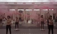 Aktivistlər təxminən on dəqiqə Byuren sütunları üstündə açıq sinəylə dayanıblar. Onlar əvvəlcə susublar, daha sonra rəngli tüstü buraxan boruları tutaraq şüar səsləndiriblər:"Öldürülən qadınlar vətənin vecinə deyil", "Feminisidi dayandır!". Aktivistlərin bədənində Fransada öldürülən qadınların adları yazılıb . "İki gündən bir biz öldürülən qadınlar haqda eşidirik. Hələ də gözlənilən addım atılmır" - Femen hərəkatının rəhbəri ukraynalı İnna Şevçenko deyib.