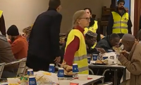Məscidin yeməkxanasına gələn onlarla evsiz insan, bu əlamətdar gündə öz evlərində olmasalar da, onlara verilən isti yeməyi yeyərək gecəni burada qeyd ediblər.
